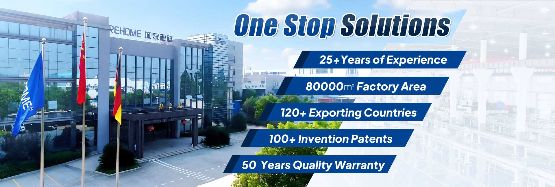 Shanghai Ruihe Enterprise Group Co.,ltd es un fabricante líder de tuberías y accesorios de plástico desde su fundación en 2002, es una empresa emergente moderna que integra investigación, desarrollo, producción, ventas y servicio postventa de tuberías y accesorios de PPR, PVC, HDPE .